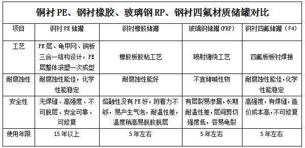 12、全塑PE儲罐或鋼襯塑PE/PO儲罐可盛裝的化學(xué)品非常廣泛,可用于無機酸、有機酸、無機堿、有機堿和有機化合物。但不宜盛裝濃硫酸、濃硝酸等強氧化劑,能使PE溶脹的芳烴、鹵代芳烴等溶劑。